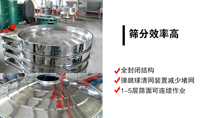 旋振筛采用全封闭结构,可保证中西药颗粒筛分过程中无粉尘溢散等情况发生,另外,旋振筛筛网下装有弹跳球,可以对筛网进行清洁,有效解决筛网堵孔,进而提高了筛分效率,1~5层筛面,杂质或粗料会自动排出,可连续作业,筛分更高效。