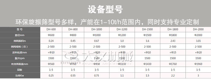 旋振筛型号多样,产能在1-10t/h范围内,同时支持专业定制,不同的设备型号,其参数、产能、机重、配置等各有差异,制造成本也会不一样,那么其价格当然不等。