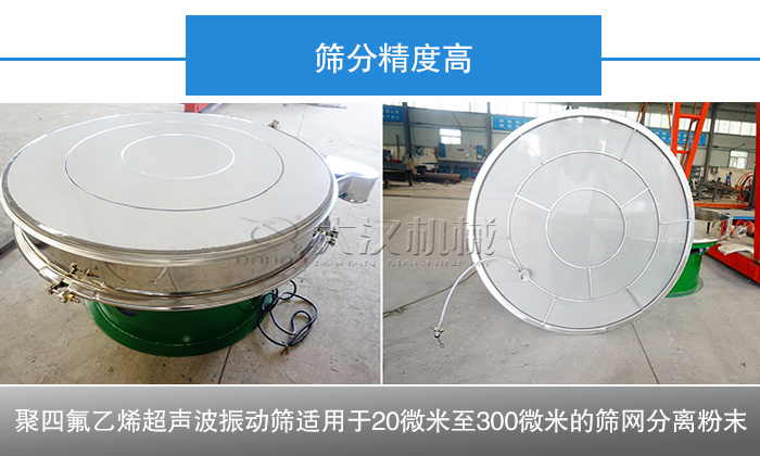 聚四氟乙烯超声波振动筛适用于20微米至300微米的筛网分离粉末,尤其对难筛分的物料效果显著,由于加装超声波筛分装置,可以加快团聚物、高静电、高精细、高密度、比重轻、吸附物料的分离,筛分精度可提高1—70%。