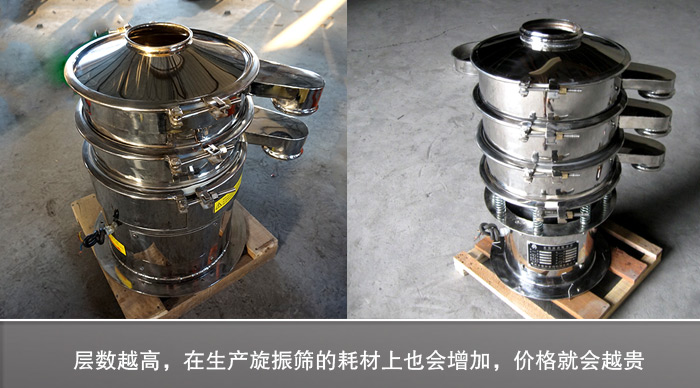 DH-400旋振筛筛面有1~5层,层数越高,相应的旋振筛价格也是不一样的。因为层数越高,在生产旋振筛的耗材上也会增加,所以导致层数越高的旋振筛其价格会越高。但是旋振筛层数建议使用3层,不宜设置过多。